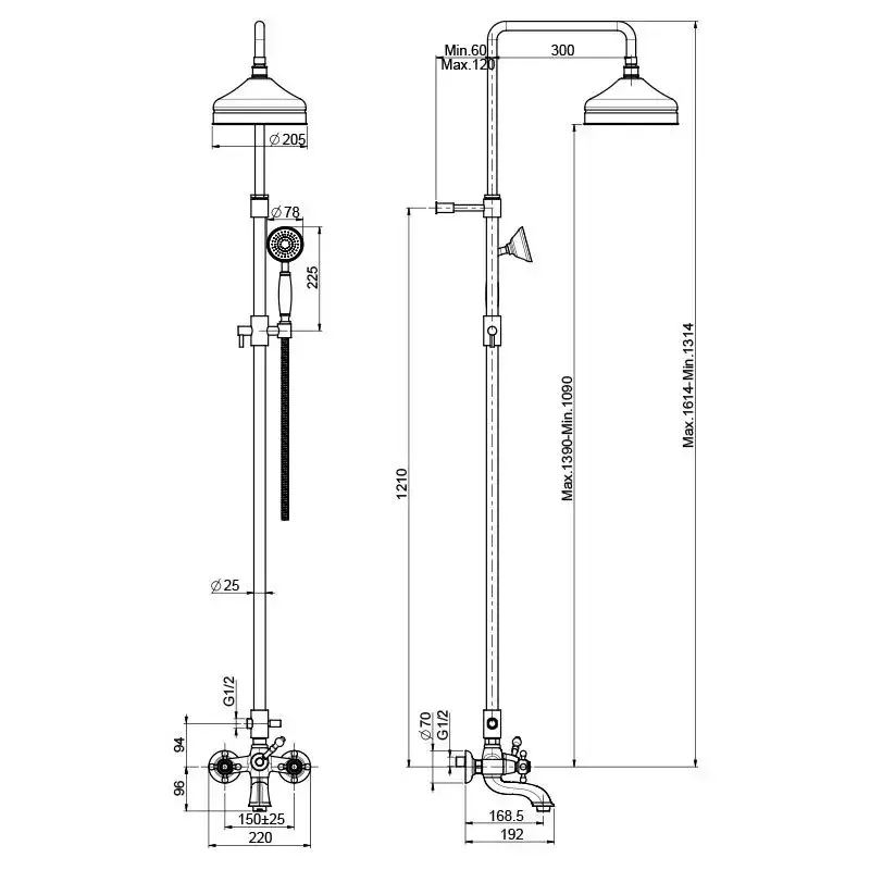 FIMA|Carlo Frattini Elizabeth Смеситель для ванны внешнего монтажа, с душевой стойкой, верхним душем Ø 200 мм. и душевым комплектом, цвет хром
