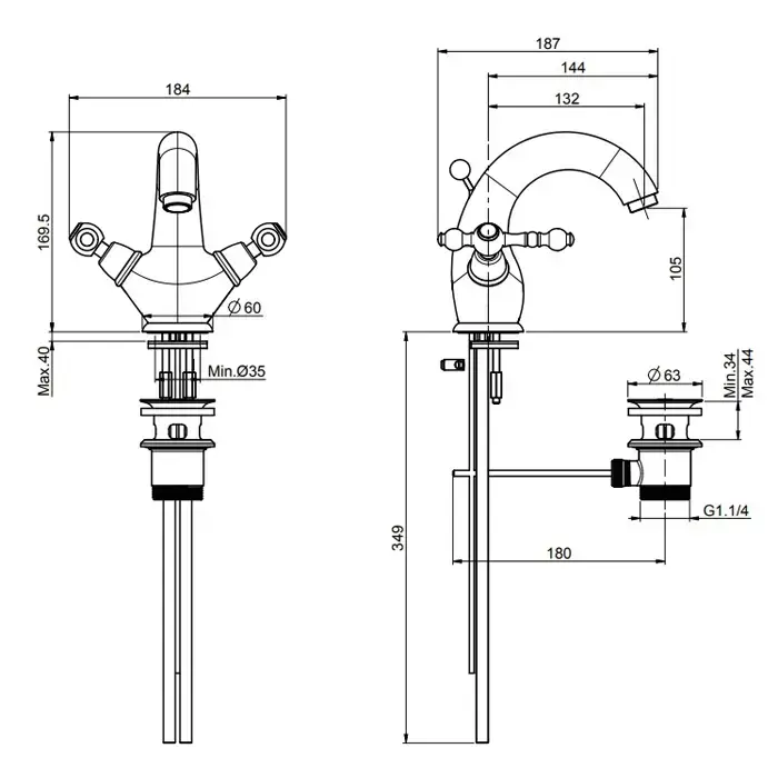 FIMA Carlo Frattini Epoque Смеситель для раковины настенный F5051/5CR, на 3 отв., излив 160 мм., внешняя часть, с донным клапаном click-clack, цвет: хром