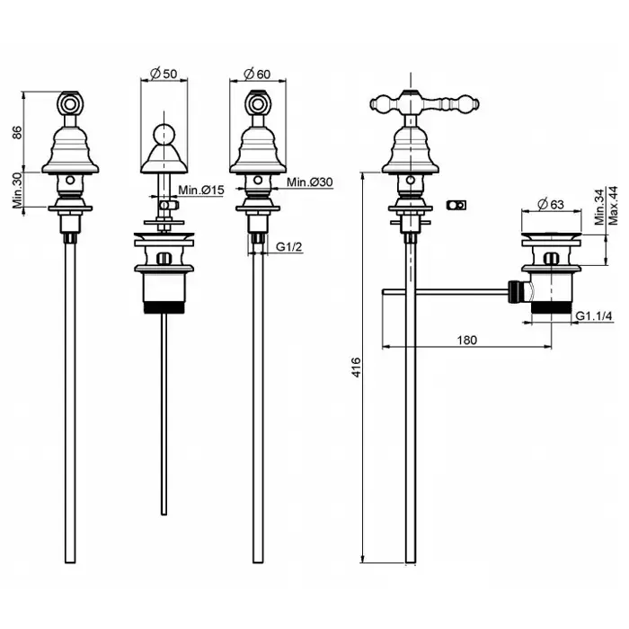 FIMA Carlo Frattini Epoque Смеситель для раковины настенный F5051/5CR, на 3 отв., излив 160 мм., внешняя часть, с донным клапаном click-clack, цвет: хром