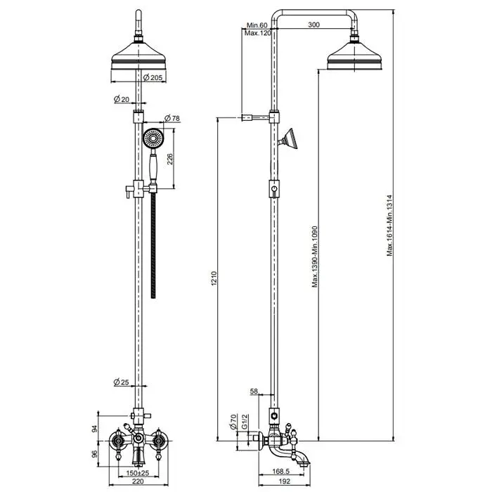 FIMA|Carlo Frattini Epoque Смеситель для ванны внешнего монтажа, с душевой стойкой, верхним душем Ø 200 мм и душевым комплектом, цвет бронза