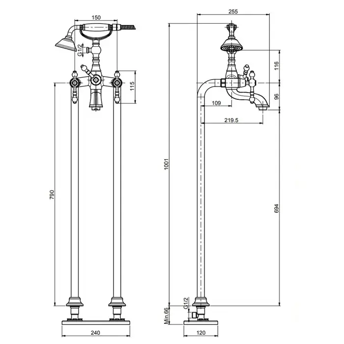 FIMA|Carlo Frattini Epoque Смеситель для ванны напольного монтажа, с душевым комплектом, цвет хром