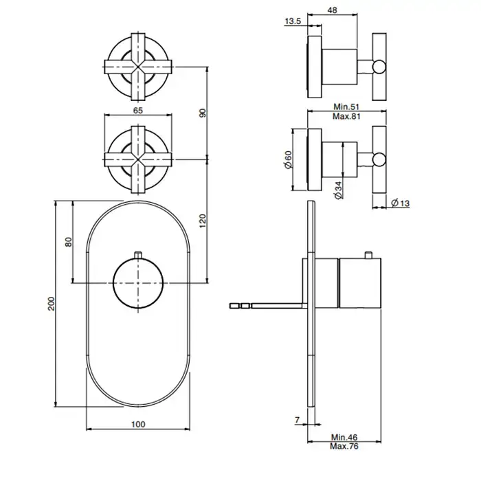 Fima Carlo Frattini Fimatherm Смеситель (Maxima) для душа встроенный, термостатический, 2 запорных вентиля, внешняя часть, цвет: чёрный матовый