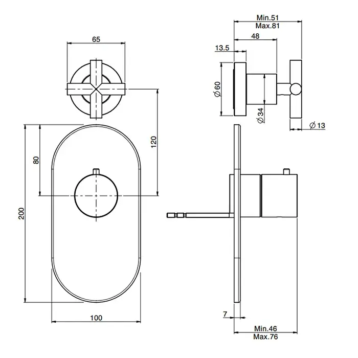 Fima Carlo Frattini Fimatherm Смеситель (Maxima) для душа встроенный, термостатический, 1 запорный вентиль, внешняя часть, цвет: чёрный матовый