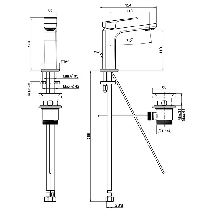 FIMA|Carlo Frattini Fit Смеситель для раковины на 1 отв, с донным клапаном, h110мм излив 110мм, цвет: хром