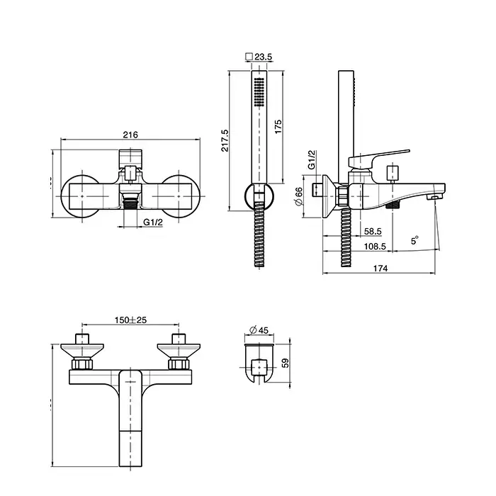Carlo Frattini Fit Смеситель для ванной, настенный, с душ. комплектом, излив 170мм, цвет: белый матовый