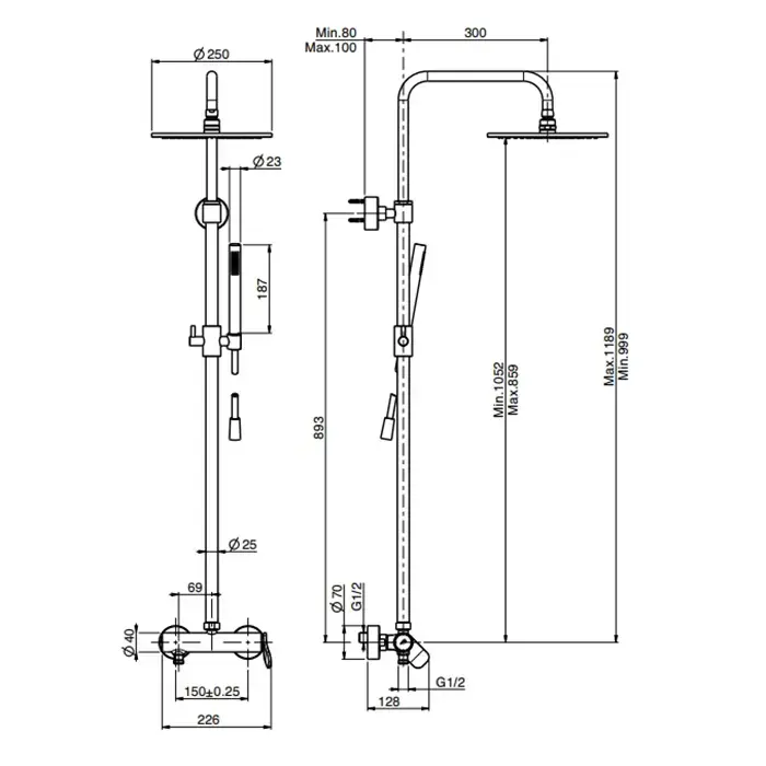 Carlo Frattini Flo' Душевая стойка, верхний душ 25см, смеситель, цвет: хром