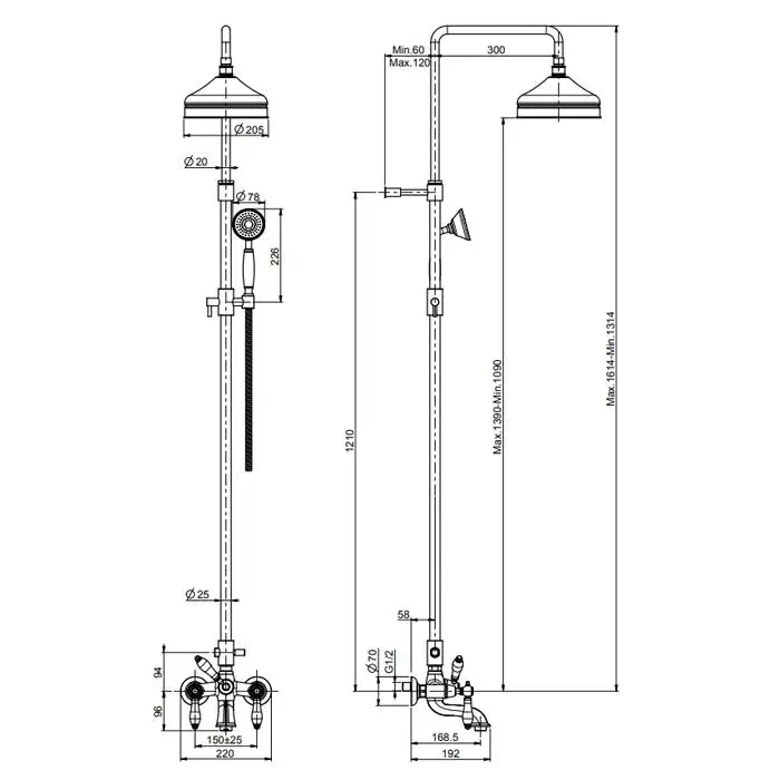 FIMA|Carlo Frattini Herend Смеситель для ванны внешнего монтажа, с душевой стойкой, верхним душем Ø 200 мм. и душевым комплектом, цвет бронза