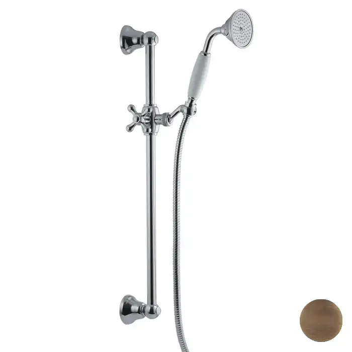 FIMA|Carlo Frattini Wellness Душевая штанга с ручным душем с белой керамической ручкой и металлическим шлангом 1500 мм., цвет бронза