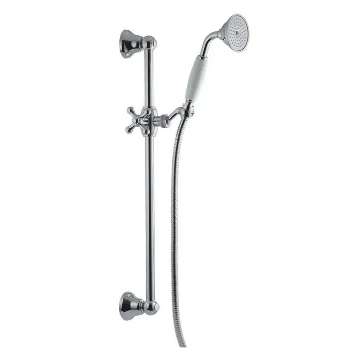 FIMA|Carlo Frattini Wellness Душевая штанга с ручным душем с белой керамической ручкой и металлическим шлангом 1500 мм., цвет хром