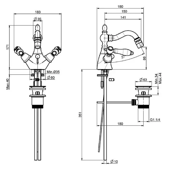 FIMA|Carlo Frattini Herend Смеситель для биде, на 1 отверстие, с вращающимся изливом, с донным клапаном, цвет бронза