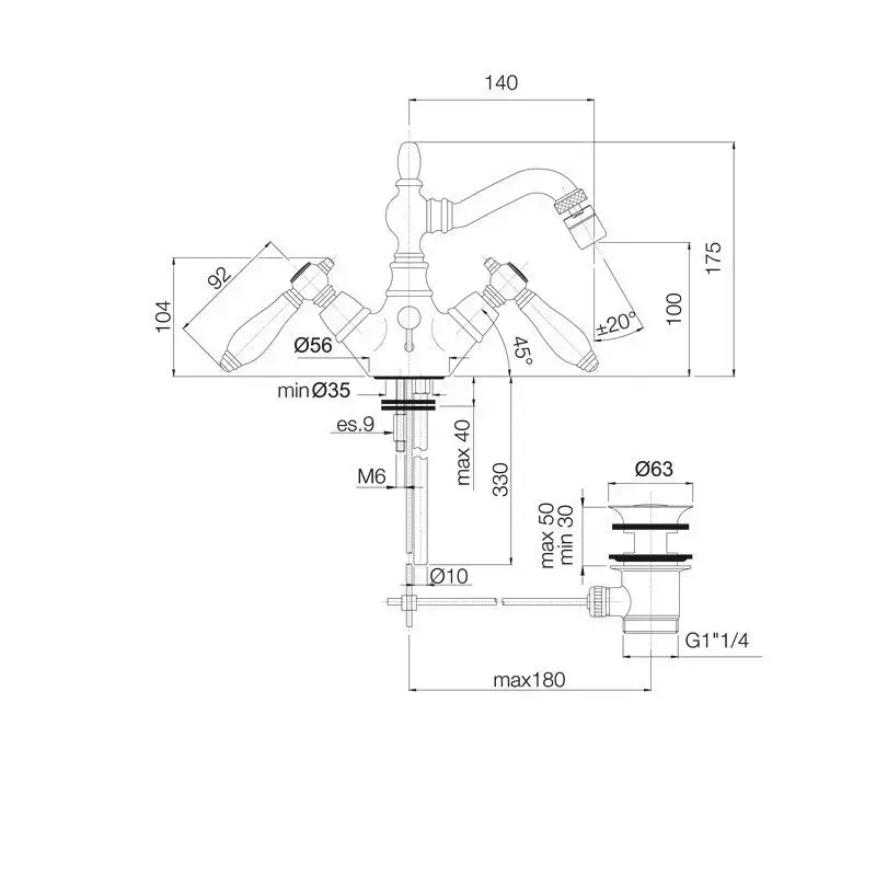 FIMA|Carlo Frattini Herend Смеситель для биде, на 1 отверстие, с вращающимся изливом, с донным клапаном, цвет хром