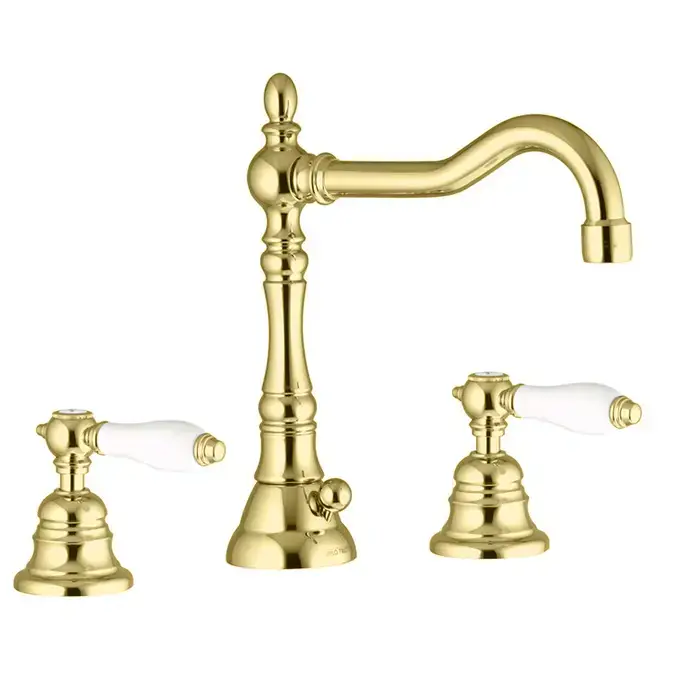 Carlo Frattini Herend Смеситель для раковины, на 3 отверстия, с поворотным изливом, с донным клапаном, цвет: золото