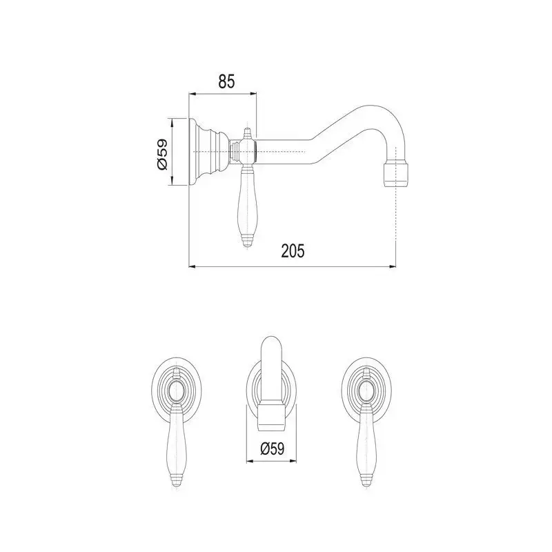 FIMA|Carlo Frattini Herend Смеситель для раковины настенного монтажа, на 3 отверстия, излив 200 мм, внешняя часть, донный клапан click- clack, цв хром