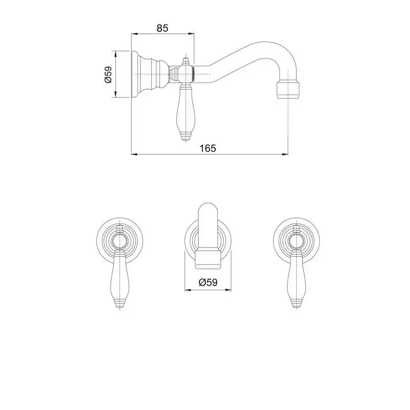 FIMA|Carlo Frattini Herend Смеситель для раковины настенного монтажа, на 3 отверстия, излив 159 мм, внешняя часть, донный клапан click- clack, цв хром