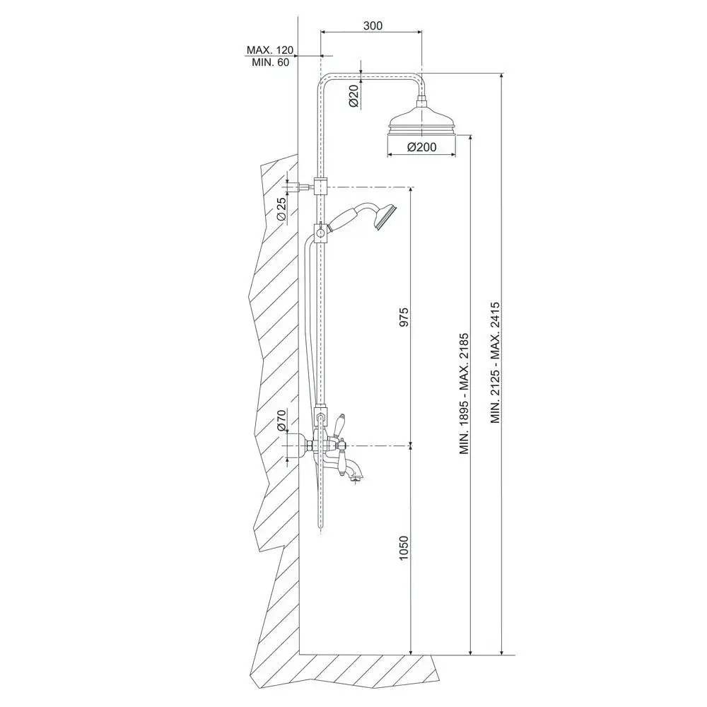 FIMA|Carlo Frattini Herend Смеситель для ванны внешнего монтажа, с душевой стойкой, верхним душем Ø 200 мм. и душевым комплектом, цвет хром