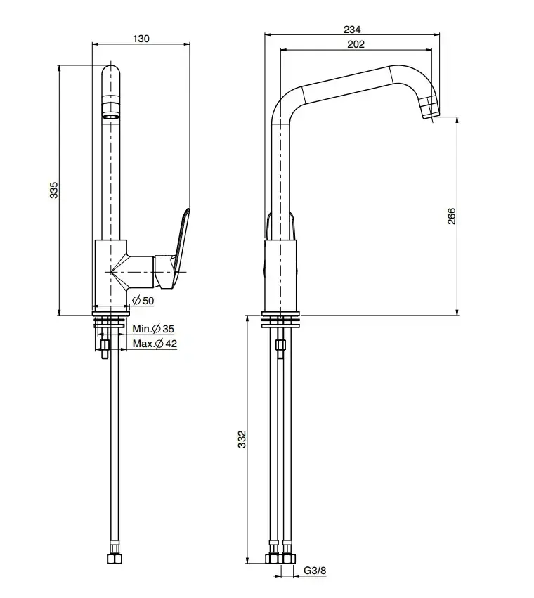 Carlo Frattini Kitchen Кухонный смеситель, вращающийся излив, с двумя гибкими шлангами 370 мм, цвет: хром