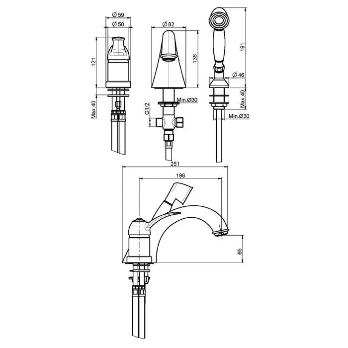 Fima Carlo Frattini Lamp Смеситель на борт ванны, на 3 отв., с ручным душем, цвет: золото
