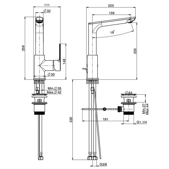 FIMA|Carlo Frattini Mast Смеситель для раковины, вращающийся излив, с донным клапаном, цвет хром