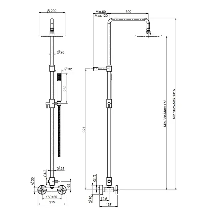 FIMA|Carlo Frattini Maxima Смеситель для душа внешнего монтажа, с душевой штангой, верхним душем Ø 250 мм. и душевым комплектом, цвет хром