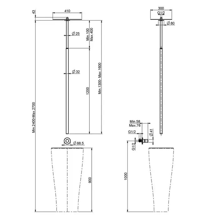 FIMA|Carlo Frattini Nomos go Смеситель для раковины встроенный, с потолочным изливом 1300-1600 мм., внешняя часть, цвет хром