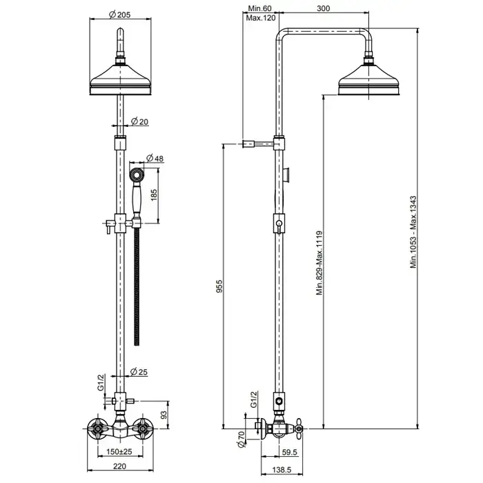 FIMA|Carlo Frattini Olivia Смеситель для душа внешнего монтажа с душевой штангой, верхним душем Ø 200 мм. и душевым комплектом, цвет хром