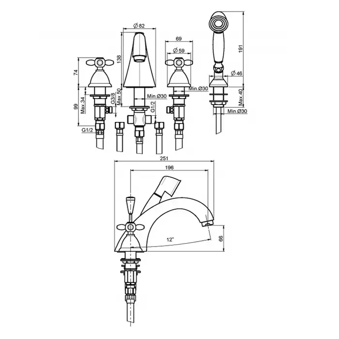 FIMA|Carlo Frattini Olivia Смеситель на борт ванны, с душевым комплектом, цвет хром