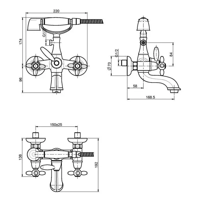 Carlo Frattini Olivia Смеситель на ванну, в комплекте: шланг, ручной душ, цвет: бронза