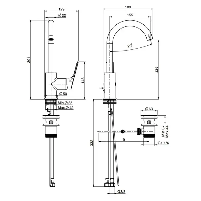 FIMA|Carlo Frattini Serie 4 Смеситель для раковины, вращающийся излив, с донным клапаном, цвет хром