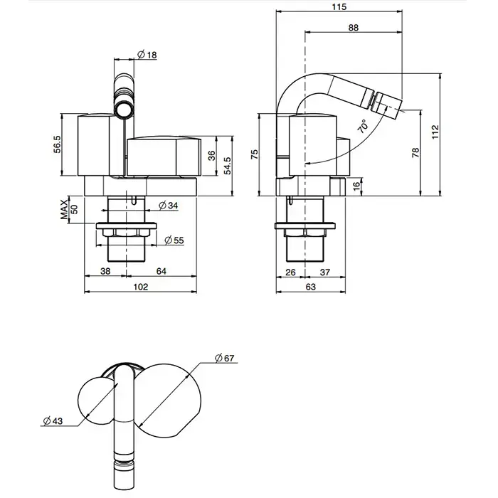 FIMA|Carlo Frattini So Смеситель для биде двухкомандный, без ручек, с донным клапаном click-clack, цвет хром