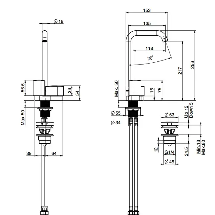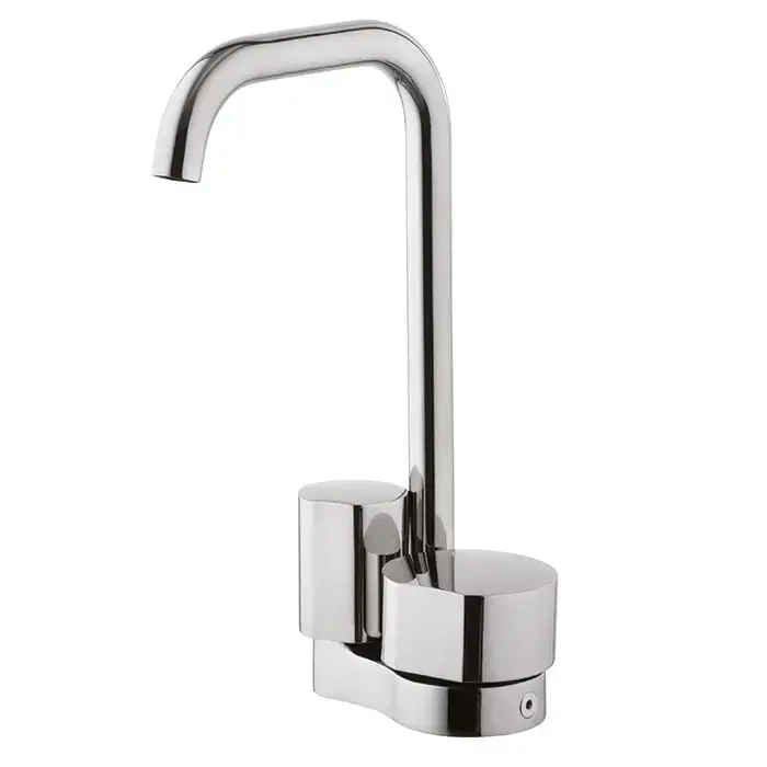 Carlo Frattini So Смеситель для раковины двухкомандный, на 1 отверстие, поворотный излив Ø 18 мм, донный клапан click-clack, цвет: хром
