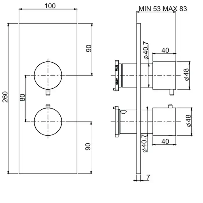 FIMA|Carlo Frattini Spillo Steel Смеситель для душа встроенный, термостатический, с переключателем на 2/3 источника, внешняя часть, цвет INOX