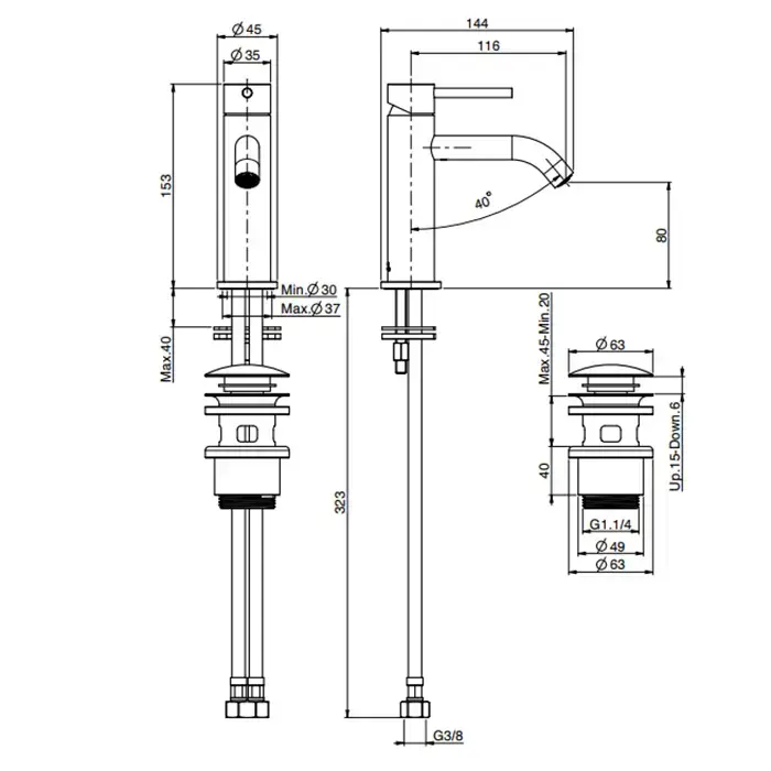 Carlo Frattini Spillo Steel Смеситель для раковины, на 1 отверстие, с донным клапаном click-clack, цвет: INOX