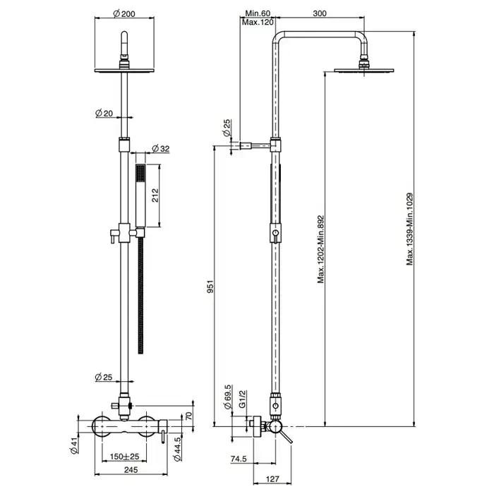 Carlo Frattini Spillo Up Смеситель для душа с душевой стойкой, верхним душем Ø 250 мм. и душевым комплектом, цвет: черный матовый