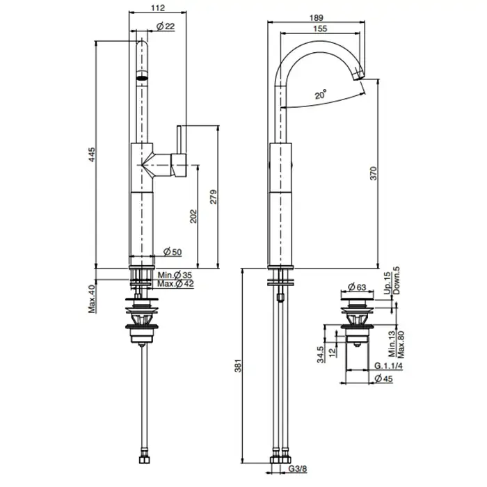 Fima Carlo Frattini Spillo Up Смеситель для раковины, на 1 отв., с донным клапаном, цвет: хром