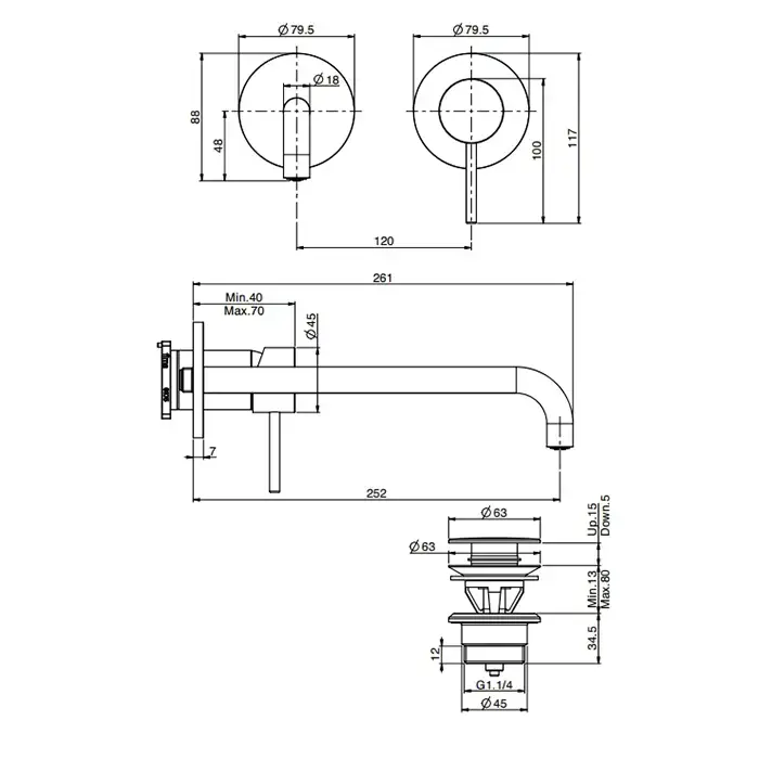 Carlo Frattini Spillo Up Смеситель для раковины, встраиваемый, излив: 15см, с донным клапаном, внешняя часть, цвет: хром