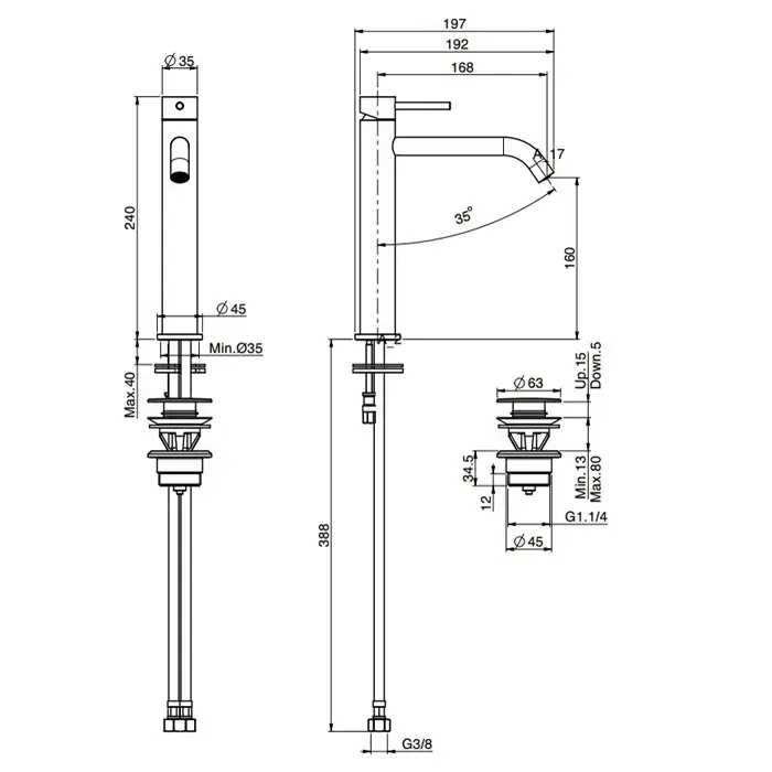 Carlo Frattini Spillo Up Смеситель для раковины, высота 240 мм., излив 168 мм., с донным клапаном click-clack, цвет: черный матовый