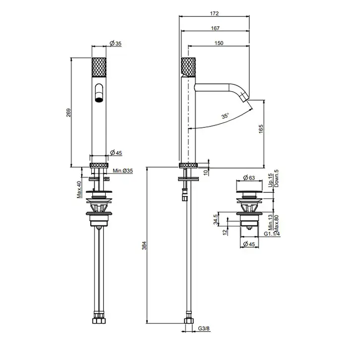Carlo Frattini Spillo Up Смеситель для раковины, высота 24см., излив 16.8см., с донным клапаном click-clack, цвет: белый матовый