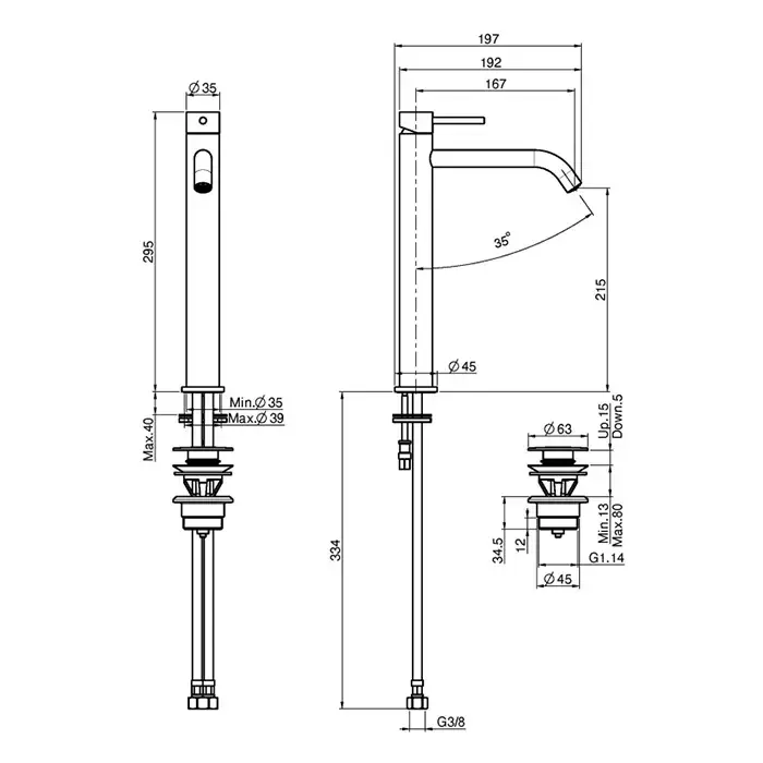 Carlo Frattini Spillo Up Смеситель для раковины, встраиваемый, излив: 20см, с донным клапаном, внешняя часть, цвет: черный матовый