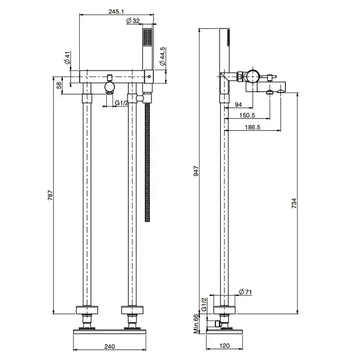 FIMA|Carlo Frattini Spillo Up Смеситель для ванны напольного монтажа, с душевым комплектом, цвет хром