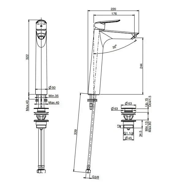 FIMA|Carlo Frattini Spot Смеситель для раковины, высота 322 мм., с донным клапаном click-clack, цвет хром