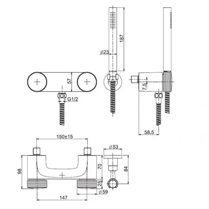 FIMA|Carlo Frattini Texture Collection Смеситель для душа внешнего монтажа, ручки "H", без накладок, с душевым комплектом, цвет хром (без накладок)