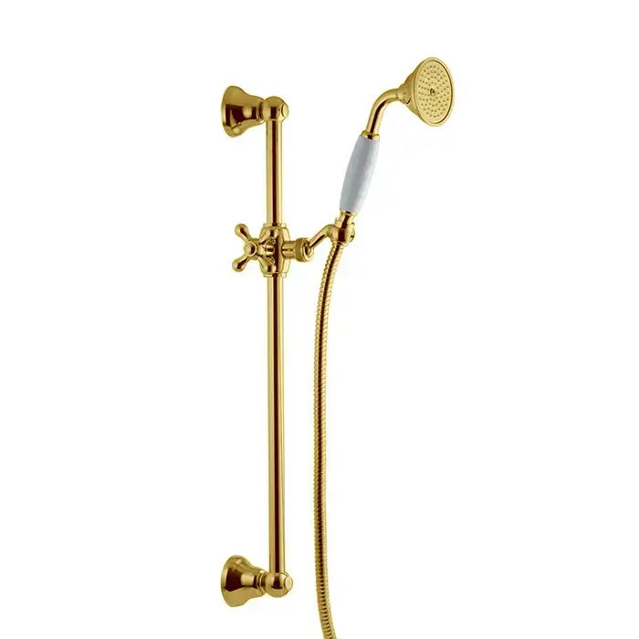 Carlo Frattini Wellness Душевая штанга из латуни в комплекте со шлангом 1500 мм. и ручным душем из латуни, ручка из белой керамики, цвет: золото