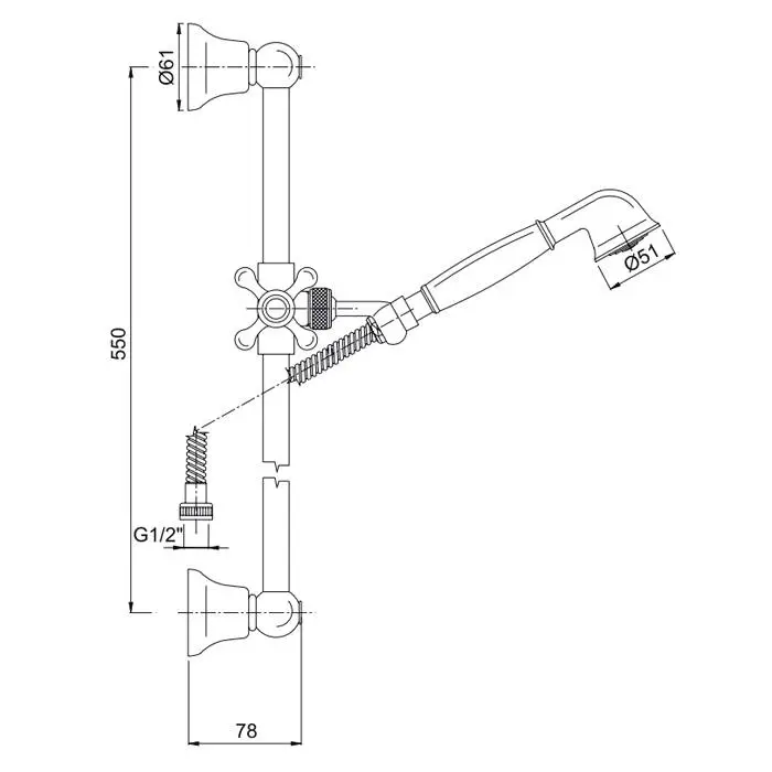 Carlo Frattini Wellness Душевой гарнитур, в комплекте: стойка, шланг 1500 мм, ручной душ, держатель, цвет: бронза