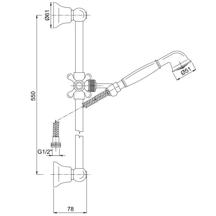 FIMA|Carlo Frattini Wellness Душевая штанга с ручным душем и металлическим шлангом 1500 мм., цвет античная медь