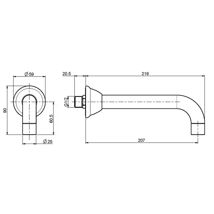FIMA|Carlo Frattini Wellness Излив для настенного монтажа, длина 207 мм., цвет хром