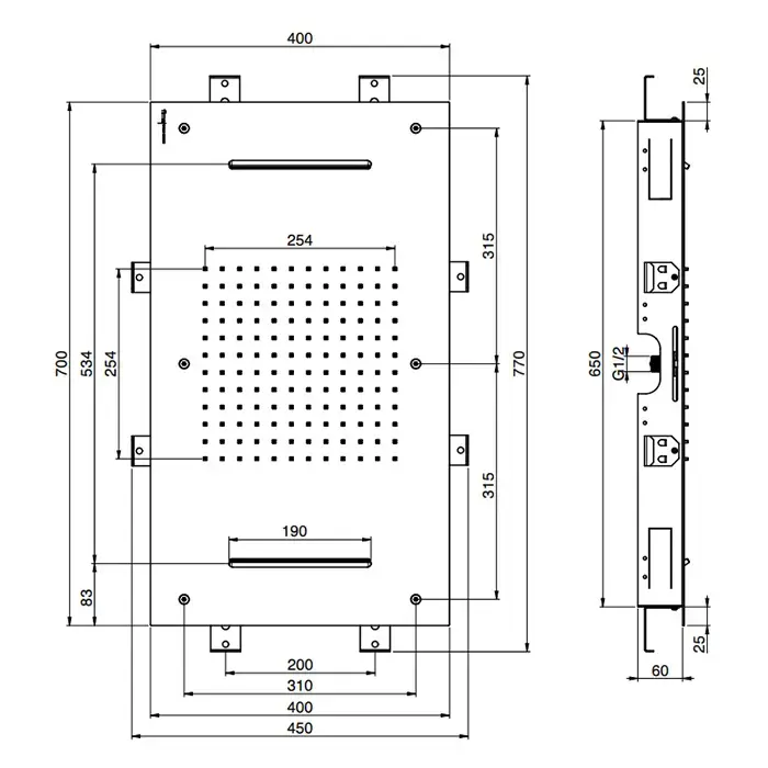 Carlo Frattini Wellness Верхний душ Harmonia 700x400 мм., встраиваемый в потолок, 2 режима: дождь, 2 каскада; нержавеющая сталь, цвет: хром