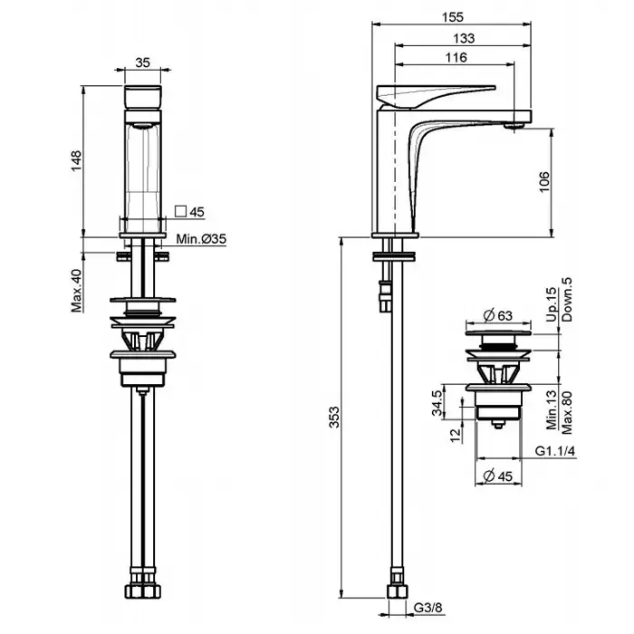FIMA|Carlo Frattini Zeta Смеситель для раковины, высота 146 мм., с донным клапаном click-clack, цвет хром