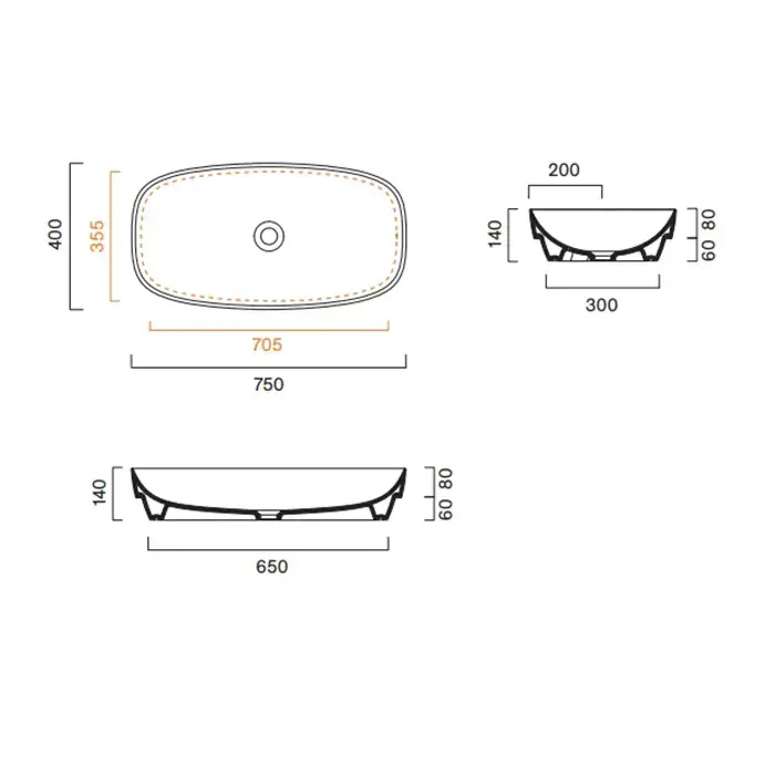 Catalano Alvea Раковина 75x40см встраиваемая, без отв., цвет: черный матовый