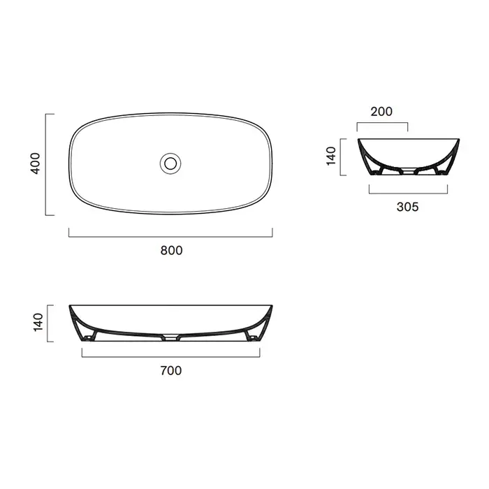 Catalano ALVEA Раковина 80x40 накладная, без отв. под смеситель, покрытие Cataglaze+, цвет Seta Satinato