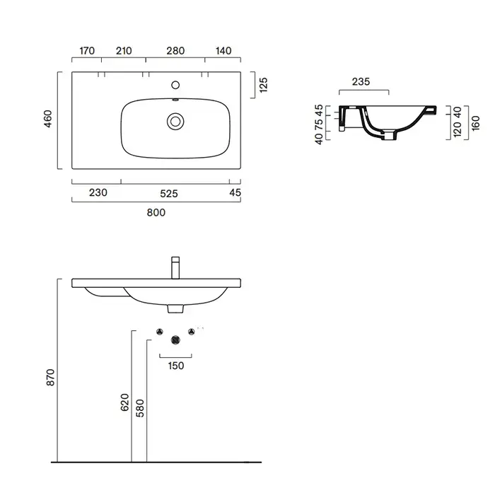 Catalano Alvea Раковина 80x46см чаша справа, с 1 отв., цвет: белый глянцевый